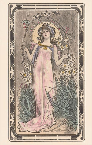 AT-437 Woman with Bird Hoop - Vintage Image