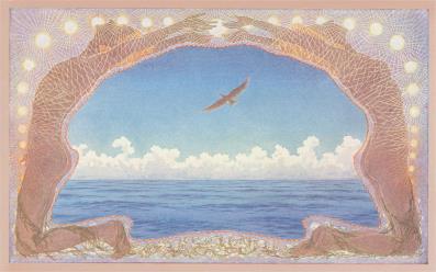 AT-513 Naked Man and Woman Framing Seascape - Vintage Image