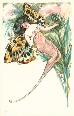 AT-59 Butterfly Woman, Art Nouveau - Vintage Image