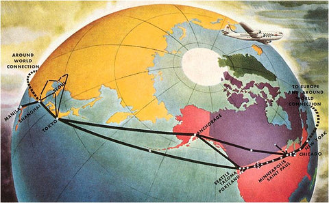 AV-05 Around World Connection, Plane and Globe - Vintage Image