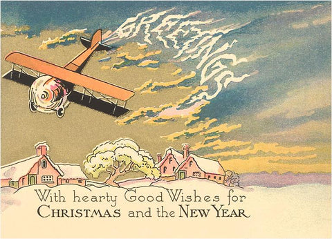 AV-78 Holiday Greetings with Biplane - Vintage Image