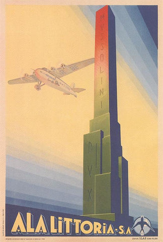 AV-272 Airplane Passing Mussolini Obelisk - Vintage Image
