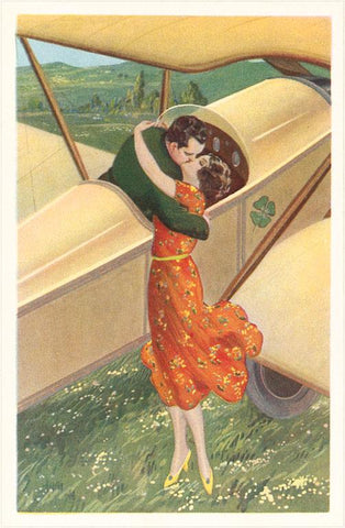 AV-439 Biplane, Couple Kissing - Vintage Image