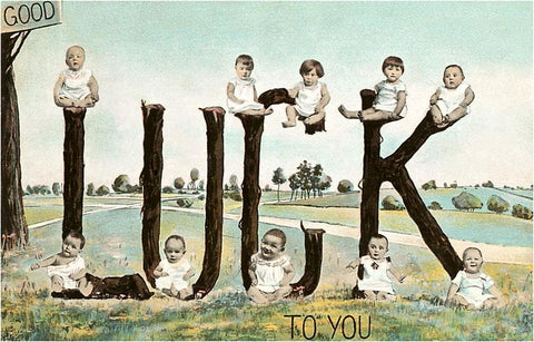 BY-15 Good Luck to You, Babies on Letters - Vintage Image