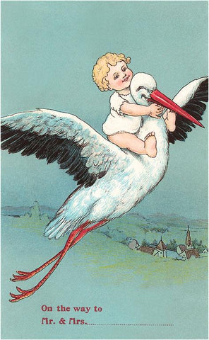 BY-20 Baby Riding Stork, Announcement - Vintage Image