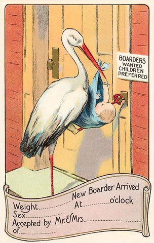 BY-21 Boarders Wanted, Stork and Baby, Announcement - Vintage Image