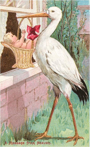 BY-23 A Message from Heaven, Stork at Window - Vintage Image