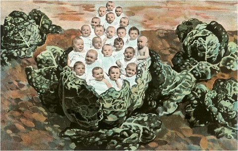 BY-64 Victorian Babies in Cabbage Patch - Vintage Image