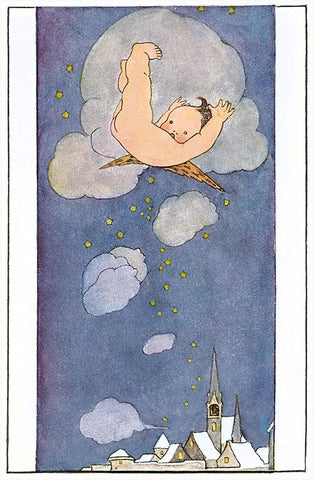 BY-78 Baby Angel Falling onto Village - Vintage Image