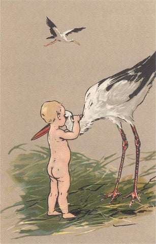 BY-101 Baby Hugging Stork - Vintage Image