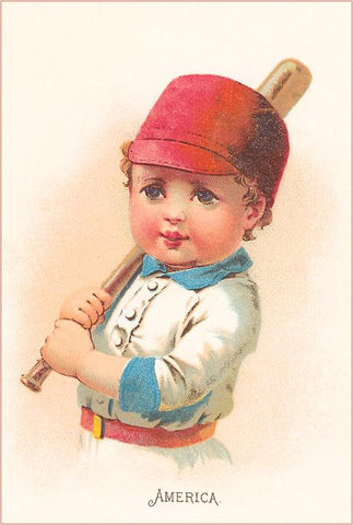 AS-39 America, Little Boy with Bat, Illustration - Vintage Image