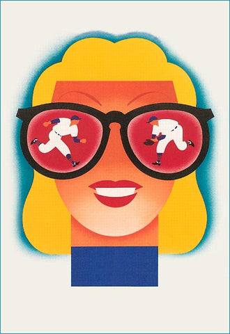 AS-225 Graphic of Woman Watching Baseball - Vintage Image