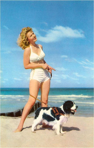 BB-09 Woman in Two-Piece with Spaniel - Vintage Image