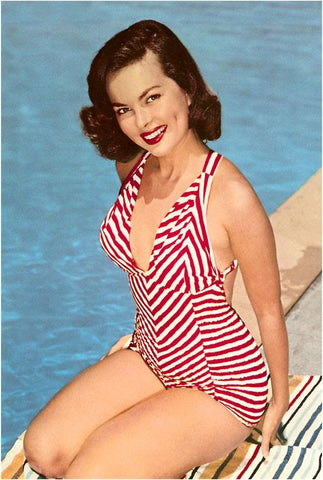 BB-32 Woman in Striped Suit by Pool - Vintage Image