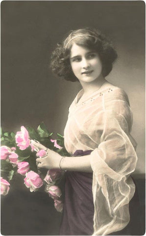 BW-23 Woman with Flowers - Vintage Image