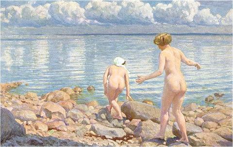 BW-38 Naked Women on Rocky Shore - Vintage Image
