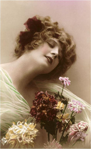 BW-49 Woman with Gossamer and Dahlias - Vintage Image