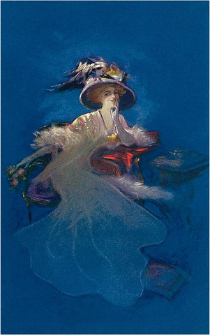 BW-69 Woman with Picture Hat in Chair - Vintage Image