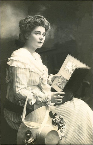 BW-95 Old-Fashioned Woman Reading Book - Vintage Image