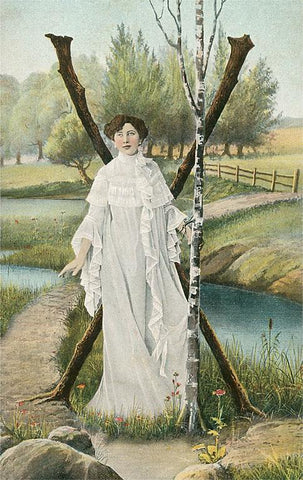 BW-99 Woman Standing by Crossed Trees, X - Vintage Image