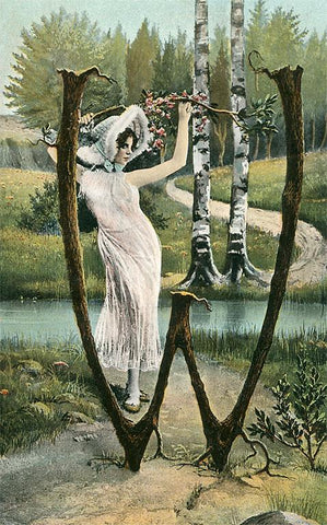 BW-100 Woman Posing by Tree, W - Vintage Image