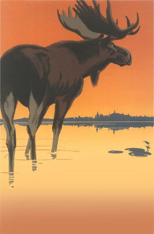 AN-369 Moose in the Lake - Vintage Image