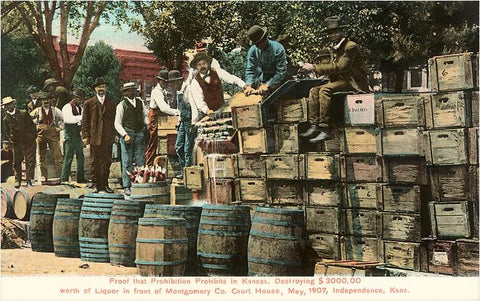 BV-35 Destruction of Liquor in Kansas, Prohibition, 1907 - Vintage Image