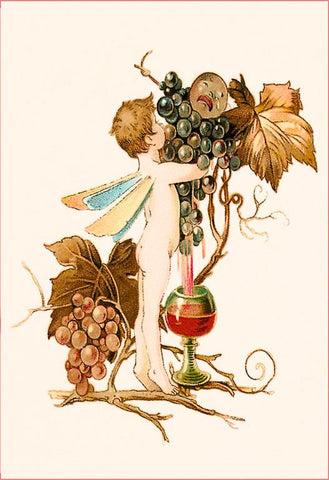 BV-112 Boy Fairy Squeezing Crying Grapes - Vintage Image
