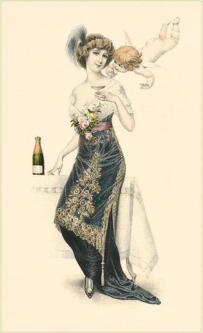 BV-113 Woman Sampling Champagne with Cupid - Vintage Image