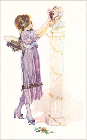 BV-118 Girl Feeding Grapes to Statue - Vintage Image