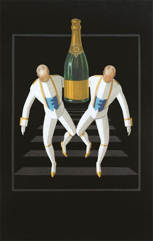 BV-149 Two Men Carrying Champagne Bottle - Vintage Image