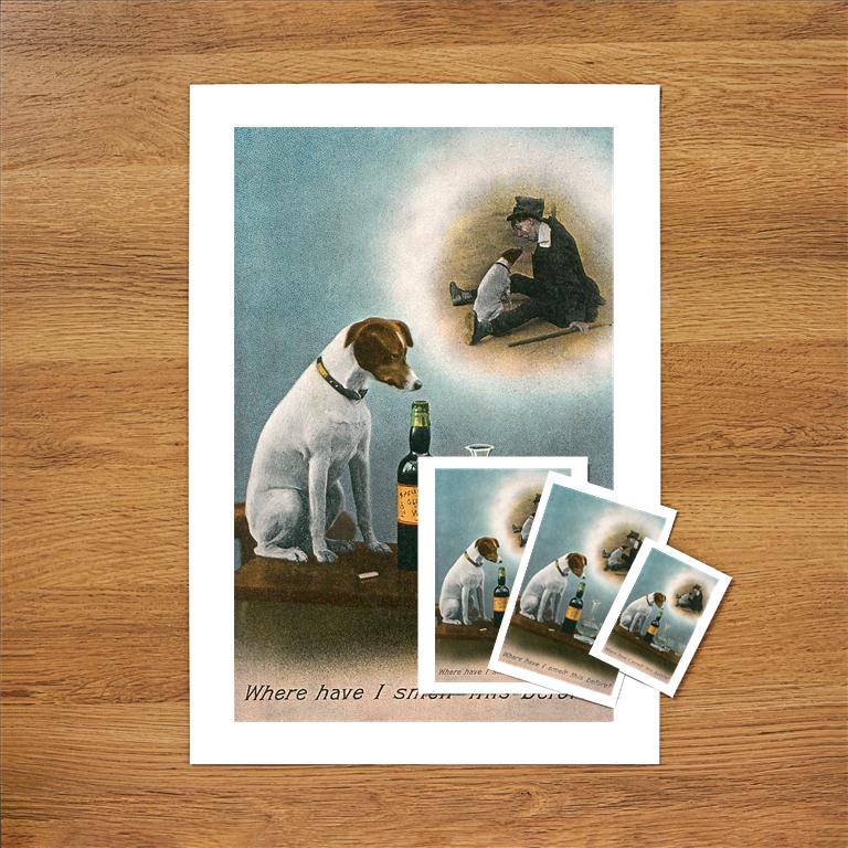 BV-156 Dog Reminiscing with Whisky Bottle - Vintage Image
