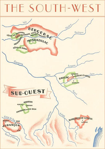BV-184 Map of French Wine Country - Vintage Image