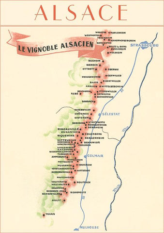 BV-192 Map of Alsace Region Wine Country - Vintage Image