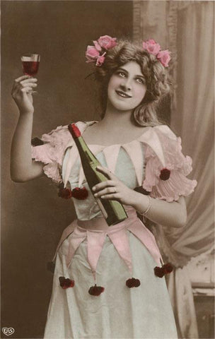 BV-301 Woman with Wine Glass and Bottle - Vintage Image