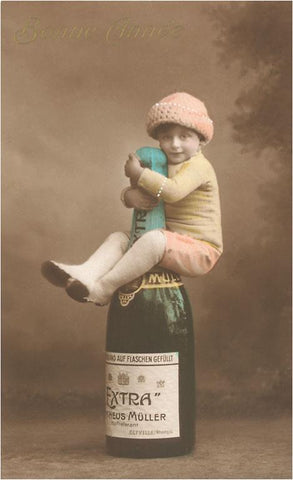 BV-310 Child on Huge Wine Bottle - Vintage Image