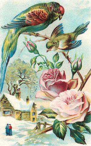 BD-02 Parrot, Roses, Illustration - Vintage Image