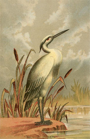 BD-166 Heron with Cattails - Vintage Image