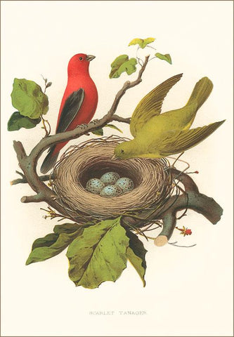 BD-201 Scarlet Tanager Nest and Eggs - Vintage Image