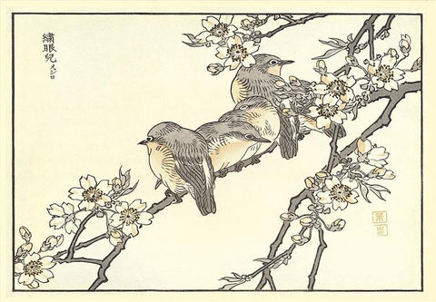 BD-290 Baby Robins on Cherry Blossoms - Vintage Image