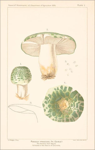PL-20 Russula Virescens Mushrooms - Vintage Image