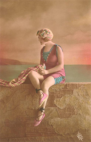 TS-07 Woman in Extensive Bathing Suit with Ballet Slippers - Vintage Image