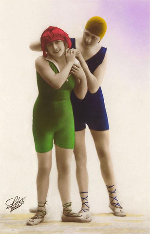 TS-10 Women in Blue and Green Bathing Suits - Vintage Image