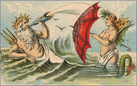 TS-34 Neptune Sporting with Mermaid, Illustration - Vintage Image