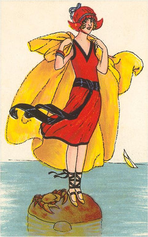 TS-39 Woman with Cape on Rock in Water - Vintage Image