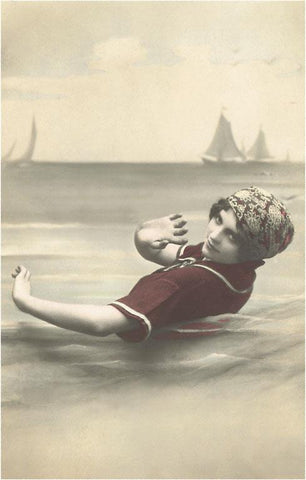 TS-52 Old Fashioned Woman in Waves - Vintage Image