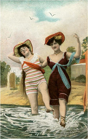 TS-65 Old Fashioned Women Frolicking at Shore - Vintage Image