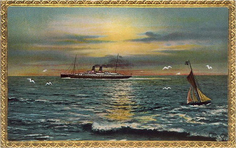 TS-71 Framed Seascape with Steamship and Sailboat - Vintage Image
