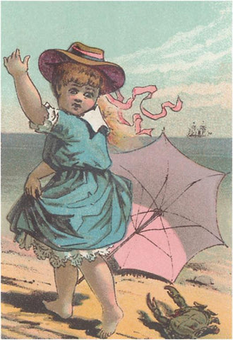 TS-74 Victorian Girl Alarmed by Crab - Vintage Image