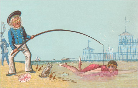TS-76 Old Salt Fishing for Girl - Vintage Image